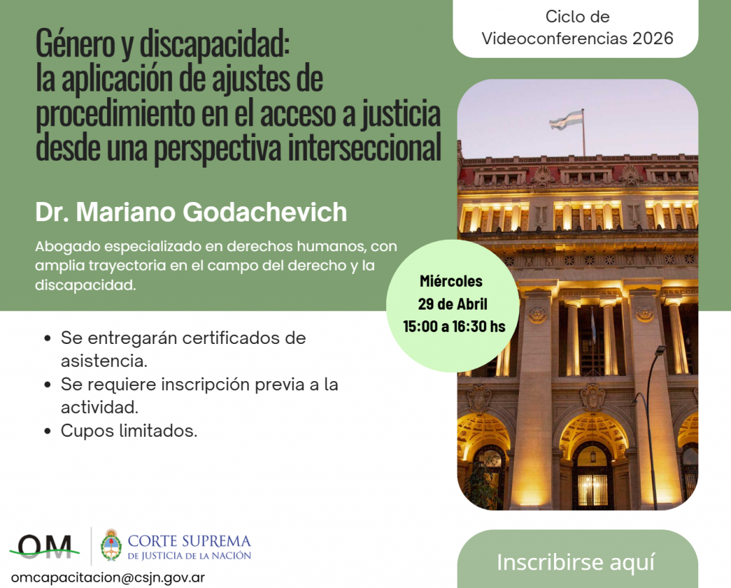 La Oficina de Género invita a participar de la Videoconferencia “Género y discapacidad: la aplicación de ajustes de procedimiento en el acceso a justicia desde una perspectiva interseccional”