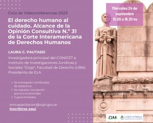 CICLO DE VIDEOCONFERENCIAS 2025 El derecho humano al cuidado. Alcance de la Opinión Consultiva N.º 31 de la Corte Interamericana de Derechos Humanos Fecha: 24 de septiembre de 2025 Título: El derecho humano al cuidado. Alcance de la Opinión Consultiva N.º 31 de la Corte Interamericana de Derechos Humanos Expositora: Dra. Laura Pautassi Ver video Material Hacia una valoración de la prueba libre de estereotipos de género Fecha: 27 de agosto de 2025 Título: Hacia una valoración de la prueba libre de estereotipos de género Expositora: María Luisa Piqué Ver video La Protección de las Niñas, Adolescentes, Mujeres Indígenas y Campesinas Fecha: 25 de junio de 2025 Título: La Protección de las Niñas, Adolescentes, Mujeres Indígenas y Campesinas Expositor: Gonzalo Leandro García Veritá Ver video Juzgados Especializados en Violencia de Género: una mirada integral del conflicto Fecha: 28 de mayo de 2025 Título: Juzgados Especializados en Violencia de Género: una mirada integral del conflicto Expositores: Noelia Cruz y Cristian Molina. Ver video Material Estándares internacionales de los derechos de las mujeres Fecha: 26 de marzo de 2025 Título: Estándares internacionales de los derechos de las mujeres Expositora: María Sofía Sagüés Ver video Género, discapacidad y acceso a Justicia Fecha: 26 de febrero de 2025 Título: Género, discapacidad y acceso a justicia Expositora: Agustina Palacios Ver video 2024 El control de las armas de fuego como aliado en la prevención de la violencia de género Fecha: 27 de noviembre de 2024 Título: El control de las armas de fuego como aliado en la prevención de la violencia de género Expositora: María Pía Devoto Ver video Material Maternidad de mujeres privadas de la libertad Fecha: 30 de octubre de 2024 Título: Maternidad de mujeres privadas de la libertad Expositoras: Silvia Zega, Noris Pignata y Rosana Laura Fabiano Ver video Material Desenmascarando la Inteligencia Artificial: Sesgos de Género y Estereotipos en la Era de la Tecnología Fecha: 25 de septiembre de 2024 Título: Desenmascarando la Inteligencia Artificial: Sesgos de Género y Estereotipos en la Era de la Tecnología Expositora: María Sánchez Caparrós Ver video Material Análisis Forense en el Abordaje de Femicidios Fecha: 28 de agosto de 2024 Título: Análisis Forense en el Abordaje de Femicidios Expositoras: Cristina Angélica Bustos y Patricia Estela Gómez Ver video Material Panóptico del fenómeno de la cibercriminalidad. Acoso en red a mujeres, niñas, niños y adolescentes Fecha: 26 de junio de 2024 Título: Panóptico del fenómeno de la cibercriminalidad. Acoso en red a mujeres, niñas, niños y adolescentes Expositoras: Daniela Dupuy y Natalia Marcela Molina Ver video Material Acceso a la Jurisdicción de los Pueblos Indígenas Fecha: 29 de mayo de 2024 Título: Acceso a la Jurisdicción de los Pueblos Indígenas Expositoras: Martha Altabe y Elizabeth González Ver video Material La perspectiva de género a lo largo del proceso judicial Fecha: 24 de abril de 2024 Título: La perspectiva de género a lo largo del proceso judicial Expositora: Ileana Arduino Ver video Material La pericia tanatológica en casos de femicidio Fecha: 27 de marzo de 2024 Título: La pericia tanatológica en casos de femicidio Expositores: Roberto Víctor Cohen y Alejandro Félix Rullan Corna Ver video Material Otra vez Góngora Fecha: 28 de febrero de 2024 Título: Otra vez Góngora Expositor: Fernando Ramírez Ver video Material 2023 Violencia obstétrica: hacia un cambio de paradigma Fecha: 25 de octubre de 2023 Título: Violencia obstétrica: hacia un cambio de paradigma Expositora: María Victoria Jalil Manfroni Ver video Material El conflicto entre la obligación de denuncia y el secreto profesional en contexto de violencia doméstica Fecha: 27 de septiembre de 2023 Título: El conflicto entre la obligación de denuncia y el secreto profesional en contexto de violencia doméstica Expositor: Dr. Roberto Oscar Foyo Ver video Material Maternidades enjuiciadas. Problemas en la aplicación judicial de los delitos de omisión Fecha: 30 de agosto de 2023 Título: Maternidades enjuiciadas. Problemas en la aplicación judicial de los delitos de omisión Expositora: Cecilia Marcela Hopp Ver video Material Síndrome de Munchausen Fecha: 28 de junio de 2023 Título: Síndrome de Munchausen Expositora: Dra. Ivana Bloch, jueza de Cámara a cargo del Tribunal Oral Criminal y Correccional N°4 Ver video Material Material La Participación Política de la Mujer Fecha: 31 de mayo de 2023 Título: La Participación Política de la Mujer Expositor: Dr. Alberto Ricardo Dalla Vía Ver video Material Avances y desafíos en la violencia política por razones de género Fecha: 26 de abril de 2023 Título: Avances y desafíos en la violencia política por razones de género Expositora: Delfina García Hamilton Ver video Material Los estereotipos de género como condicionantes al acceso igualitario a Justicia Fecha: 29 de marzo de 2023 Título: Los estereotipos de género como condicionantes al acceso igualitario a Justicia Expositora: Dra. Marisa Fassi Ver video Material Material 2022 El costo económico de la Violencia Laboral Fecha: 26 de octubre de 2022 Título: El costo económico de la violencia laboral Expositora: Dra. Gloria M. Pasten de Ishihara y Dra. Viviana Mariel Dobarro Ver video Informes y estadísticas Responsabilidad por daños derivados por incumplimiento de la Debida Diligencia Fecha: 29 de septiembre de 2022 Título: Responsabilidad por daños derivados por incumplimiento de la Debida Diligencia Expositora: Dra. Claudia Caputi Ver video Fallos El costo económico de la violencia doméstica Fecha: 31 de agosto de 2022 Título: El costo económico de la violencia doméstica Expositora: Dra. Analía Monferrer Ver video Materiales Aspectos económicos de la trata de personas Fecha: 29 de junio de 2022 Título: Aspectos económicos de la trata de personas Expositora: Dra. María